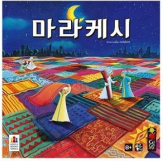 모로코 중앙에 위치하고 있고 이도시는 인구가 백만 명에 달하는 대도시입니다. 현재 모로코의 수도도 아니고, 가장 큰 도시도 아니지만 이방인들에게는 마라케시를 모로코의 대표하는 도시라 부르기도 하며, 유럽 사람들에게는 유명한 관광 도시입니다. 특히 마라케시의 양탄자 시장이 유명한데, 마라케시 도시에 가면 양탄자게기가 많기도 하며 주로 사람들이 잘 구매를 한다고 합니다. 보드게임 마라케시는 실제 마라케시의 도시를 본떠 양탄자 시장을 소재로 삼은 게임입니다. 각 각의 플레이어들은 마라케시의 양탄자 상인이 되어, 양탄자 시장의 단골 고객인 아쌈에게 많은 양탄자를 팔아야 합니다. 양탄자를 잘 팔기 위해서는 어떤 곳에 양탄자를 위치해 놓는가, 어떤 쪽으로 가면 나의 양탄자들이 많이 있는가를 따져 위치를 잘 선정해야 할 것입니다. 다양한 색깔의 다양한 모양을 가진 양탄자를 가지고 아쌈을 움직이면서 많은 돈(디르함)을 모아야 하는 게임입니다. 하지만 시장에서 양타자의 자리를 많이 차지하는 것도 중요하지만, 남의 양탄자 값을 지불하게 하지 않는 게 포인트입니다. 실제로 모로코는 디르함이라는 화폐를 사용하고 있으며, 현재 1 디르함이 363원 정도 됩니다. 이 마라케시 보드게임도 디르함이라는 돈을 쓰게 되며, 1 디르함, 5 디르함 이렇게 단위가 나눠져 있습니다. 자, 이제 시작해서 아쌈이 누구의 양탄자를 제일 많이 구매하는지, 누가 양탄자가게에서 제일가는 부자가 될지 한번 여행을 시작해 봅니다.