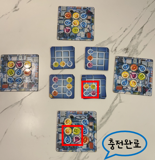 5. 전자회로 카드 중 아무거나 선택하여 토큰을 똑같이 배치하였으면 "충전완료!"를 외쳐욧!